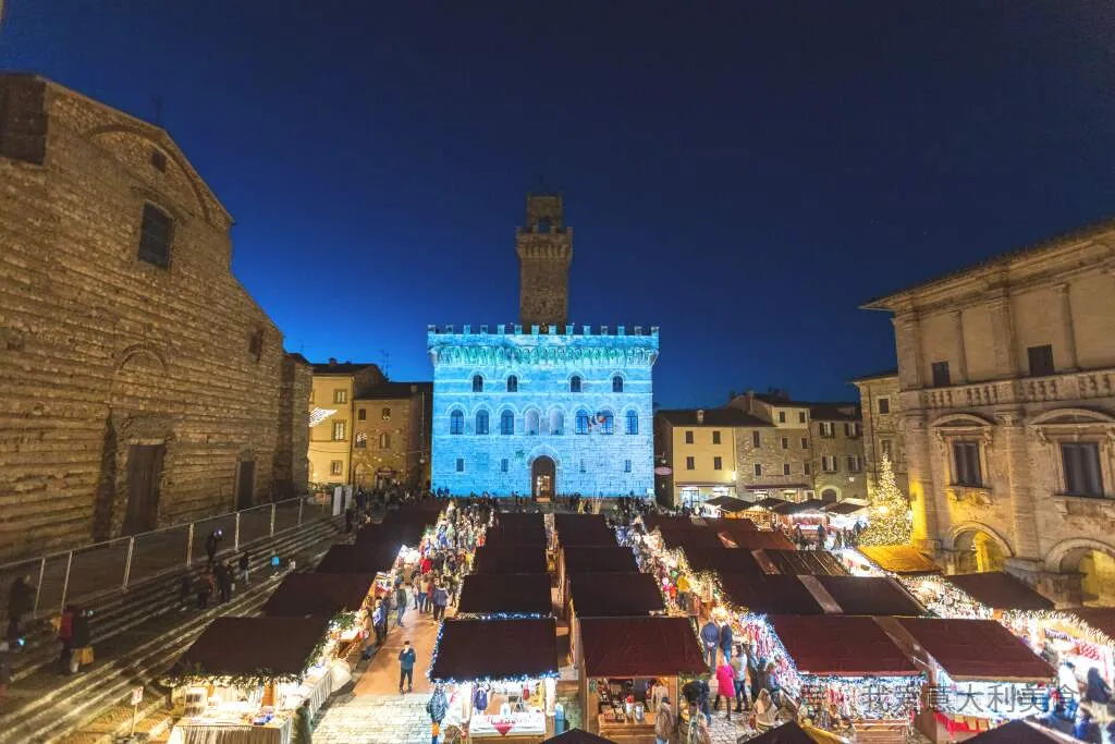 近年来,蒙特普尔恰诺(Montepulciano)圣诞市场已成为意大利中部最受欢迎和规模最大的圣诞市场之一,它的优点是,即使在夏季以外,它也能吸引游客前往这个美丽的托斯卡纳小镇,并且与葡萄酒旅游有关。它有一个值得称道的因素:蒙特普尔恰诺美丽的中央广场大广场 (Piazza Grande) 的位置。市政厅通常会放映以圣诞节为主题的动画,营造出更具象征性的氛围。