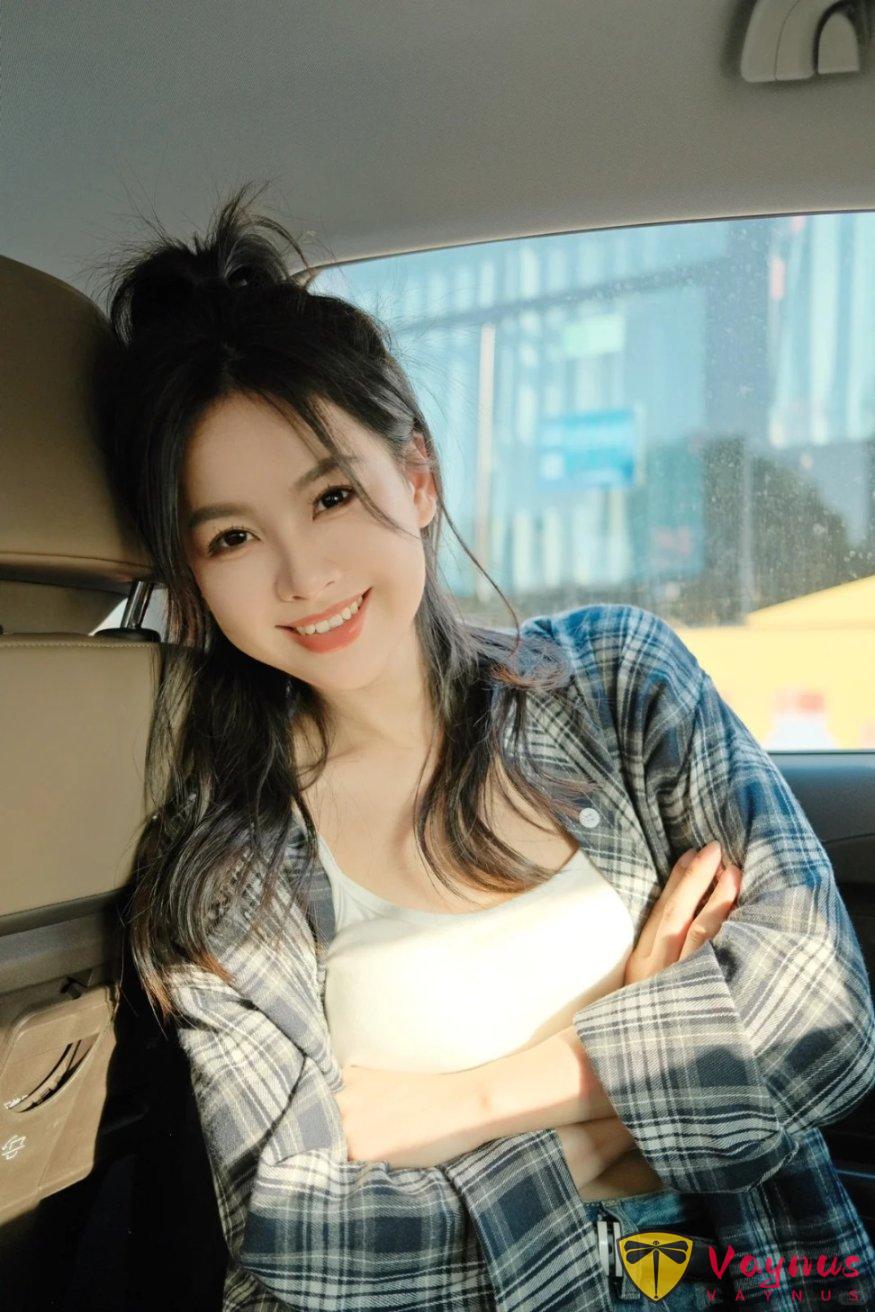 02.背靠车门,手搭前排座椅上,用手背托下巴,斜眼看镜头微笑