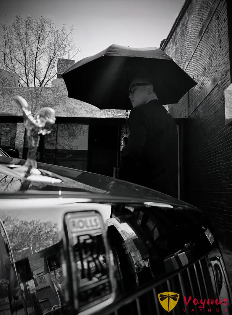 開啟相機的黑白濾鏡,利用車頭的小金人做前景,人物站在車後方前後構圖,突出人物,黑白風格照片簡潔而又不簡單,高階感滿滿。