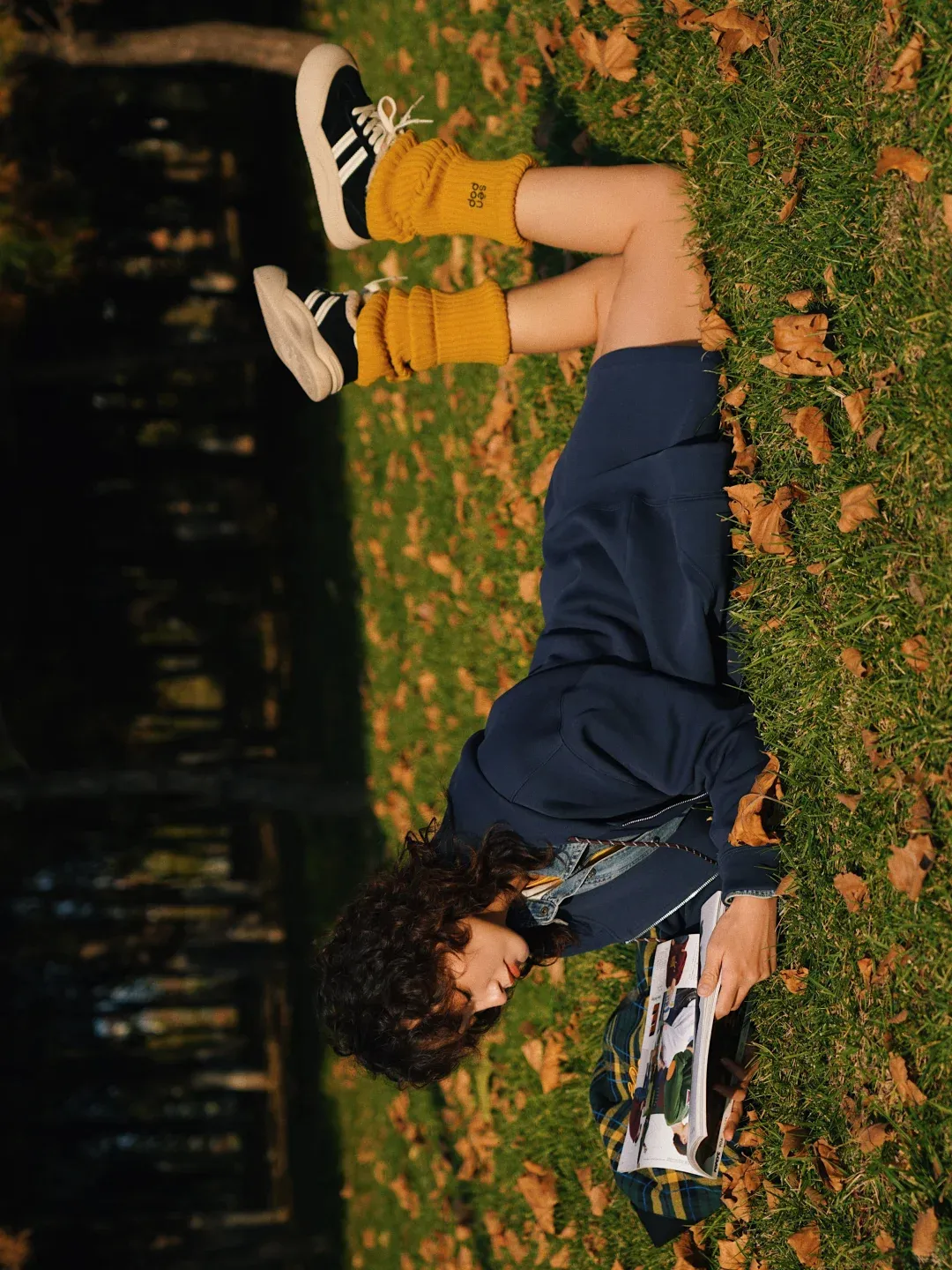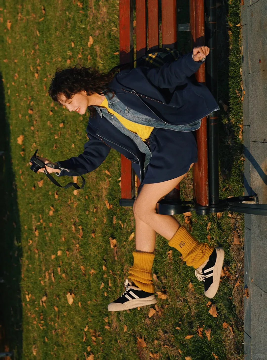 一個簡單的格子雙肩包,或者秋天必備的毛線護腿套,都能讓整體風格看起來更完整。想要增加趣味感,可以再拿上一些日常小物,比如一張塗鴉感十足的手賬紙。讓畫面看起來像是在記錄生活,而不是刻意擺拍。