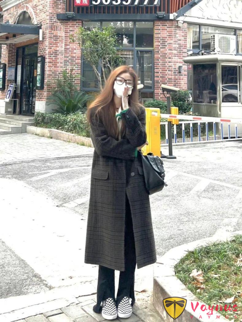 這身搭配我真的超愛,格子大衣那英倫風的設計特別有範兒,和黑色褲子搭配簡約又耐看。流蘇裝點的褲子腿也增添了一絲小性感,黑白棋盤鞋又新增了幾分小個性。簡單的黑色手提包做點綴,整體look幹練利落,非常適合上班族小姐姐。