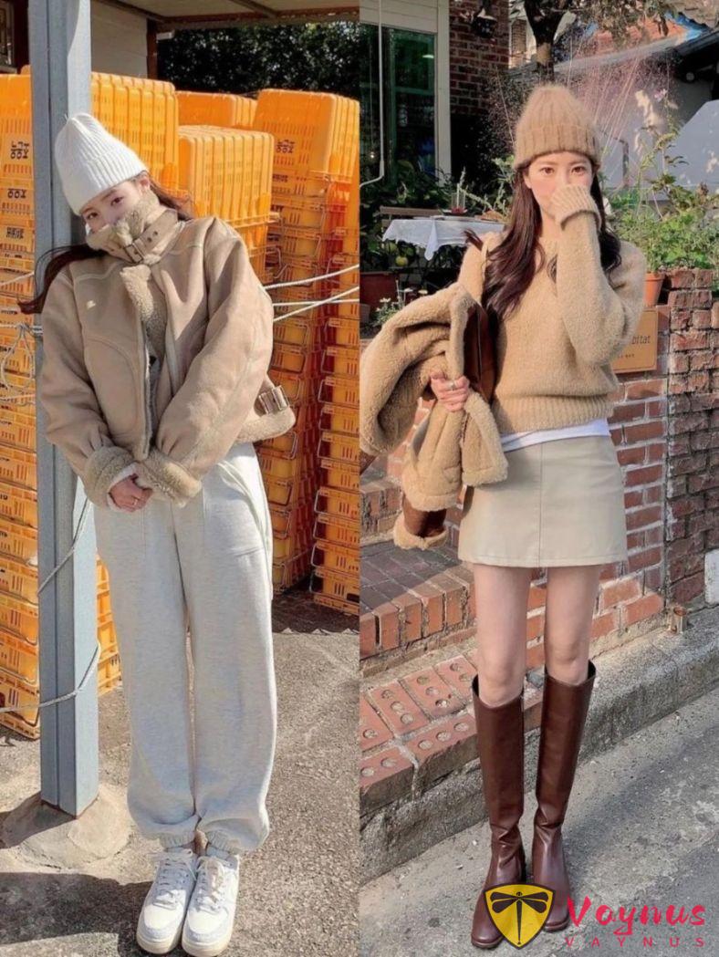 小紅: 完全同意,這種高階感爆棚卻又超級舒適的穿搭簡直不要太贊!米色羽絨服溫暖又時髦,搭配白色衛衣和淺灰色運動褲特別有feel。最後加上棕色雪地靴和白色漁夫帽,超級有街頭感!