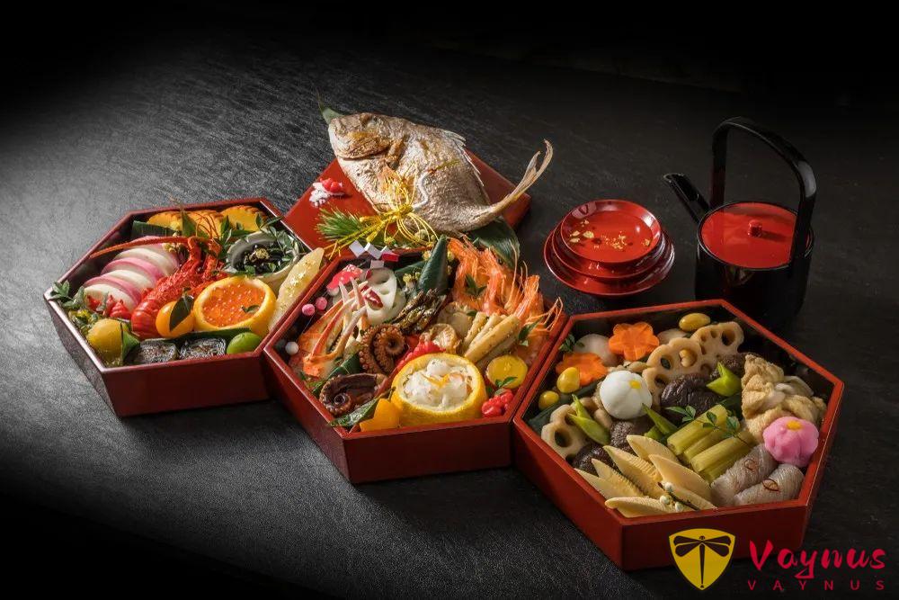 御節料理原本是供奉神明用的食物,後來流傳到了民間。因為過去的日本人認為新年開伙做飯是一種禁忌,因此御節料理通常是提前做好後放到盒子裏,吃的時候也不加熱,直接食用,在外國人看來,就像是超豪華的大份便當。