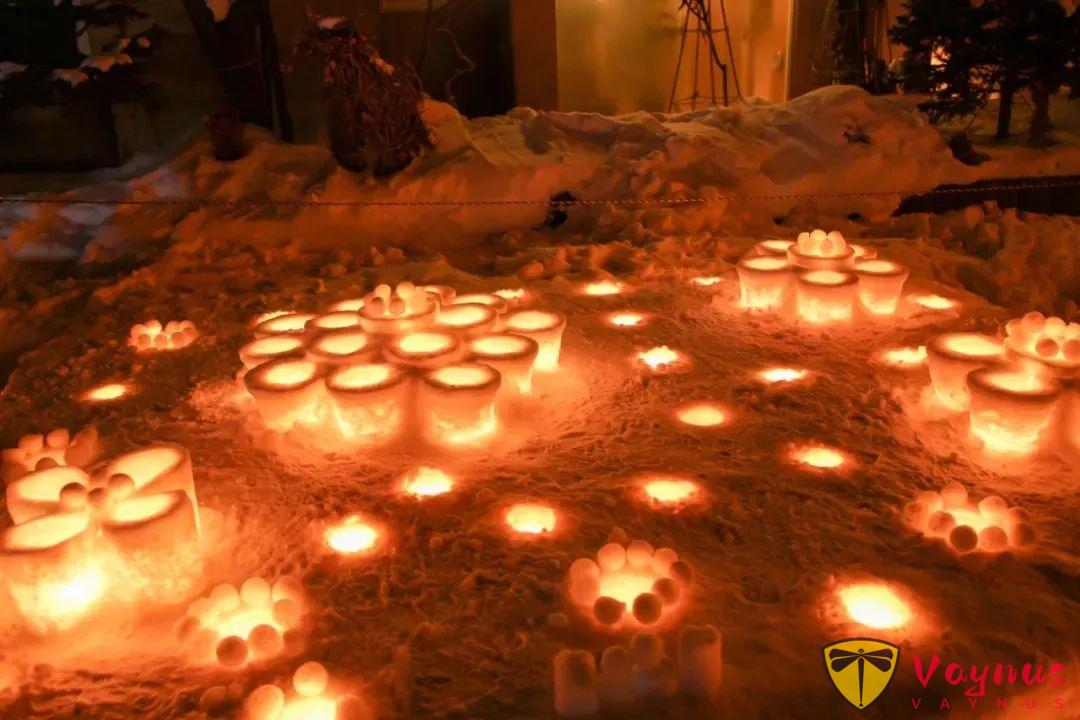 在祭典的期間,市區會搭起100多個雪窯和無數個迷你雪窯。而大雪窯會設有祭壇,孩子們會供奉美酒與年糕來祭祀水神,以求水神賜予好水。大人們也會在雪窯裡,點著燈光,和朋友邊吃邊聊邊看雪景。