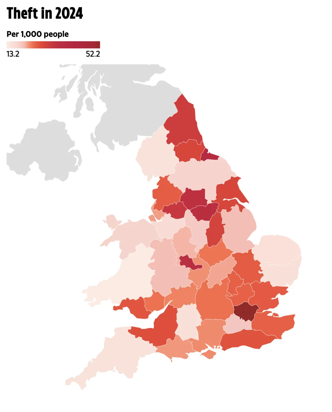 暴力犯罪在英格蘭北部相對較多